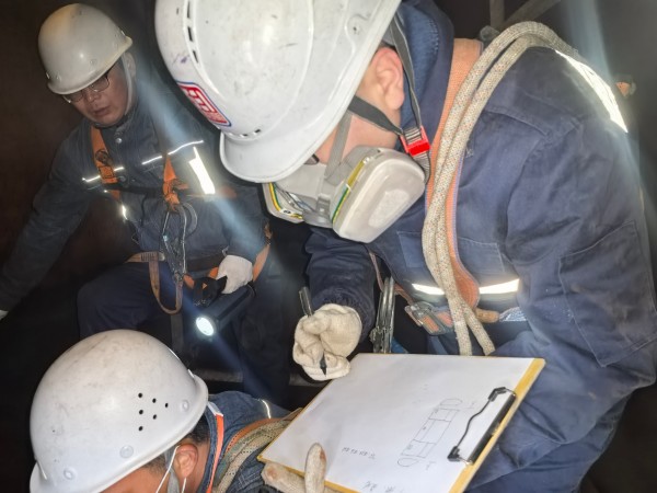 检验现场空间狭小、环境复杂,检验人员克服恶劣作业条件,以严谨细致的作风完成每一项检验。对检验中发现的问题,现场建立台账、即时反馈企业、全程指导整改,实行隐患闭环管理,确保设备不带 “病” 运行、不带 “险” 复工,以专业服务赢得企业一致认可。